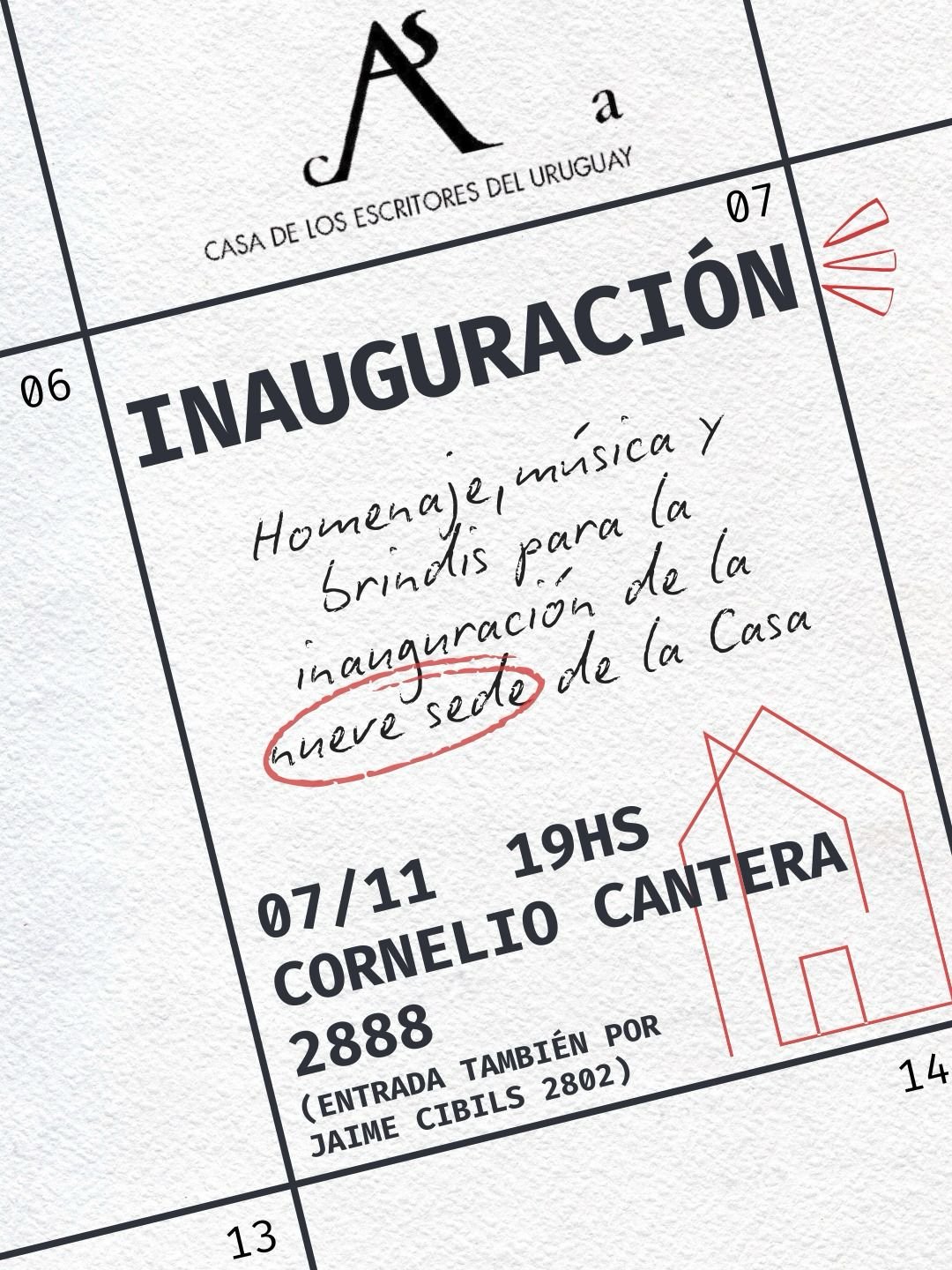 Inauguración del nuevo local social de la Casa de los Escritores del Uruguay el próximo 7 de Noviembre, Jaime Cibils y Cornelio Cantera, Montevideo.